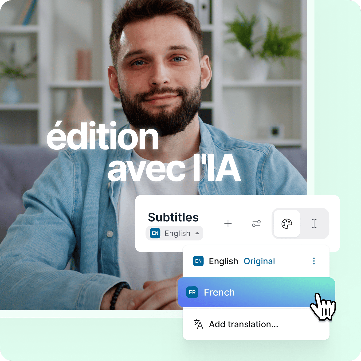 Instantly translate videos, add subtitles in multiple languages, remove your video’s background, and clean your audio.